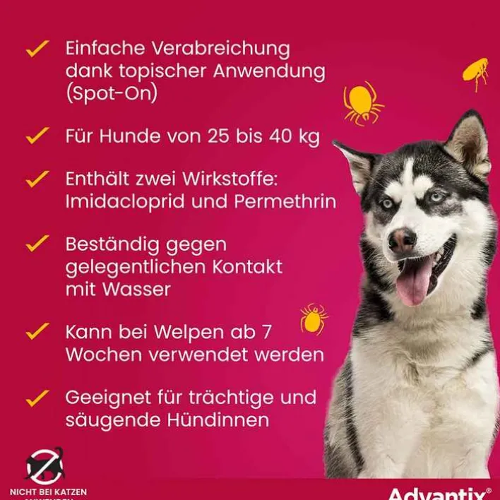 Advantix Spot-on Lösung z.Auftr.a.d.H.für Hund 25 – 40 kg, 4X4.0 ml> Flöhe, Zecken & Co.