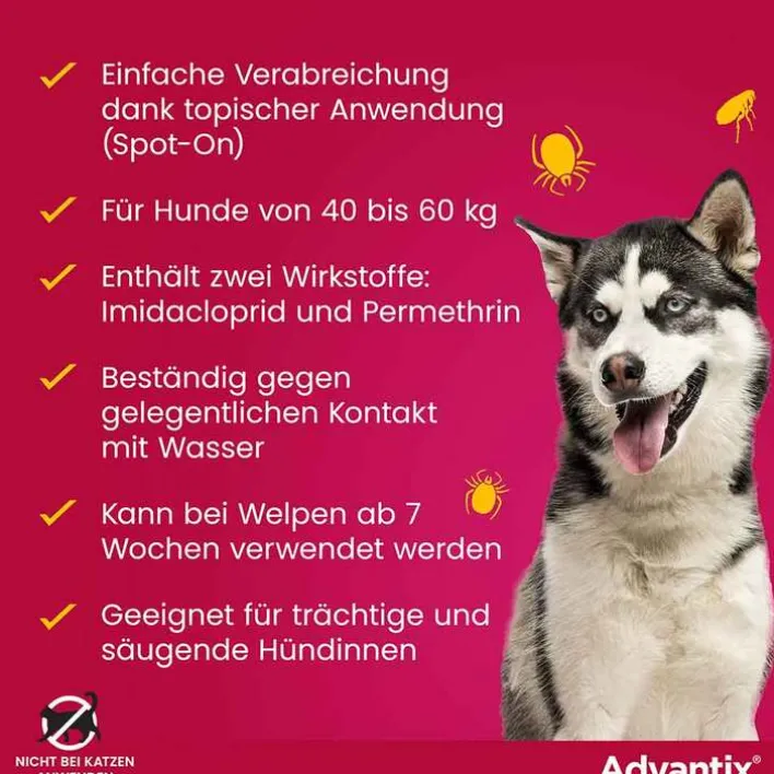 Advantix Spot-on Lösung z.Auftr.a.d.H.für Hund 40 – 60 kg, 4X6.0 ml> Flöhe, Zecken & Co.