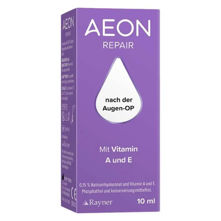 AEON REPAIR wurde speziell für die Verwendung in den ersten Wochen nach chirurgischen Eingriffen entwickelt. Das Produkt befindet sich in einem innovativen Mehrfachdosierer, der die Lösung in einem sterilen Zustand bewahrt, ohne dass Konservierungsstoffe erforderlich sind. Die Formulierung von AEON REPAIR enthält einen Wirkstoffkomplex, der hilft, die postoperativen Symptome trockener Augen zu lindern und die Regeneration der Augen nach dem Eingriff zu unterstützen.