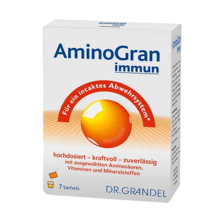- Eine Kombination von spezifischen Aminosäuren mit weiteren ausgewählten Vitaminen und Mineralstoffen rundet DR. GRANDEL AminoGran immun ab.