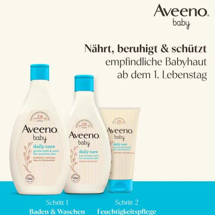 Aveeno baby daily care seifenfreies Duschgel & Shampoo mit natürlichem Haferextrakt nährt, beruhigt & schützt empfindliche Babyhaut ab Tag 1. Es reinigt sanft, schützt von Kopf bis Fuß und ist für Neugeborene und Kindern mit normaler bis trockener, empfindlicher Haut geeignet.