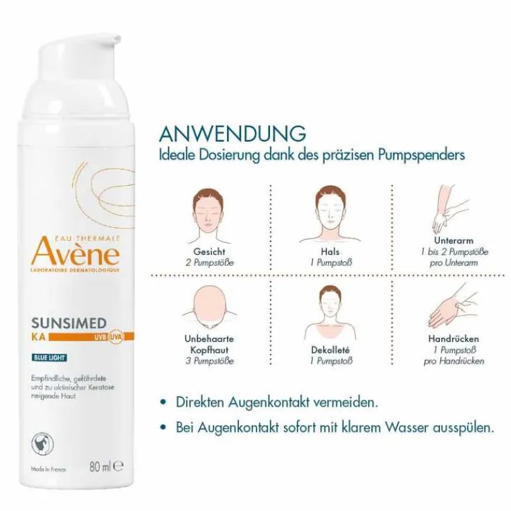 Morgens gleichmäßig auf Gesicht und die tagsüber sonnenexponierten Körperzonen auftragen. Bei längerer Sonnenexposition, starkem Schwitzen oder Kontakt mit Wasser erneut auftragen. Insgesamt nicht mehr als 26 Pumpstöße pro Tag.