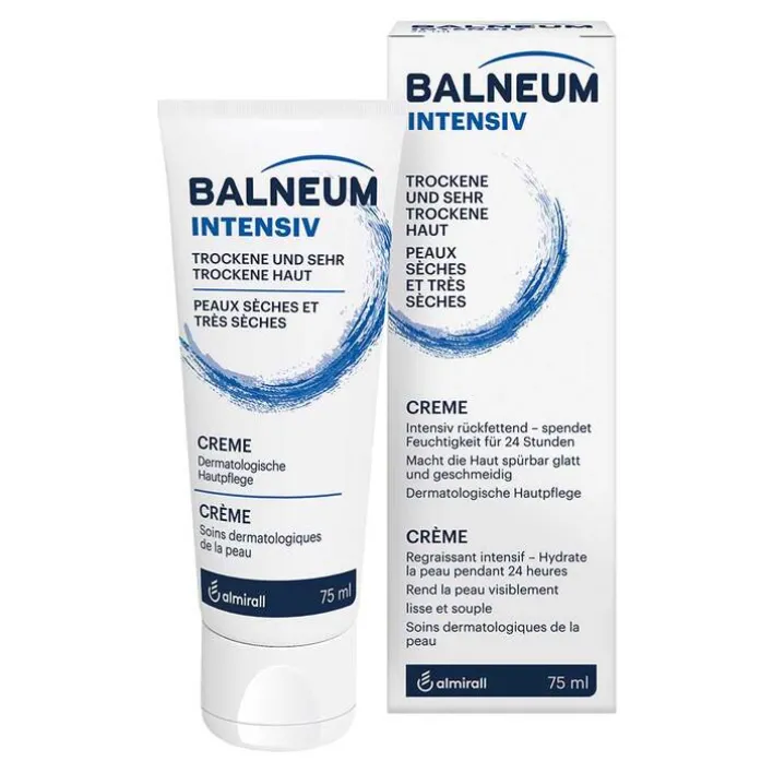 Die Creme ist intensiv rückfettend und feuchtigkeitsspendend und eignet sich zur täglichen Pflege. Balneum Intensiv Creme ist eine Öl-in-Wasser Emulsion mit hohem Lipidgehalt (ca. 30%) zur dermatologischen Pflege trockener und sehr trockener Haut. Für die tägliche Pflege kleinflächiger Hautpartien wie z.B. Gesicht und Hände.