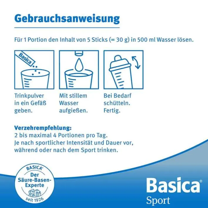 Pro Portion 30 g (6 Teelöffel) in 500 ml Wasser auflösen. 2 bis maximal 4 Portionen pro Tag. Je nach sportlicher Intensität und Dauer vor, während oder nach dem Sport trinken.