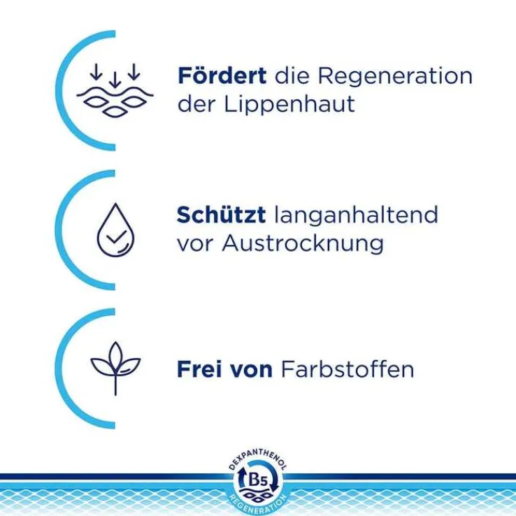 - bildet einen dünnen Film, versorgt die Lippen mit hauteigenen Fetten und schützt so vor weiterem Austrocknen