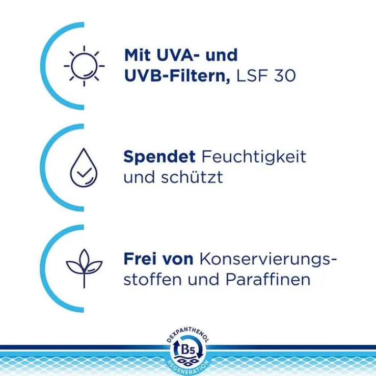 - Durch seinen hohen Lichtschutzfaktor (LSF 30) schützt er die Lippen sowohl vor UVA- als auch vor UVB-Strahlen.