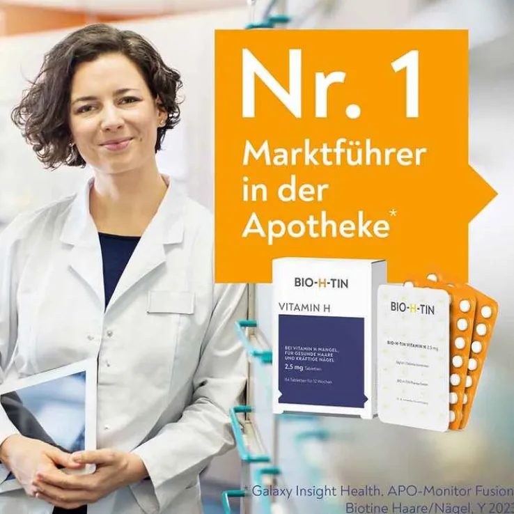BIO-H-TIN® Vitamin H 2,5 mg Tabletten. Wirkstoff: Biotin. Anw.: Prophylaxe und Therapie von Biotin-Mangelzuständen. Zu Risiken und Nebenwirkungen lesen Sie die Packungsbeilage und fragen Sie Ihre Ärztin, Ihren Arzt oder in Ihrer Apotheke. (BHT/20190529/LW)