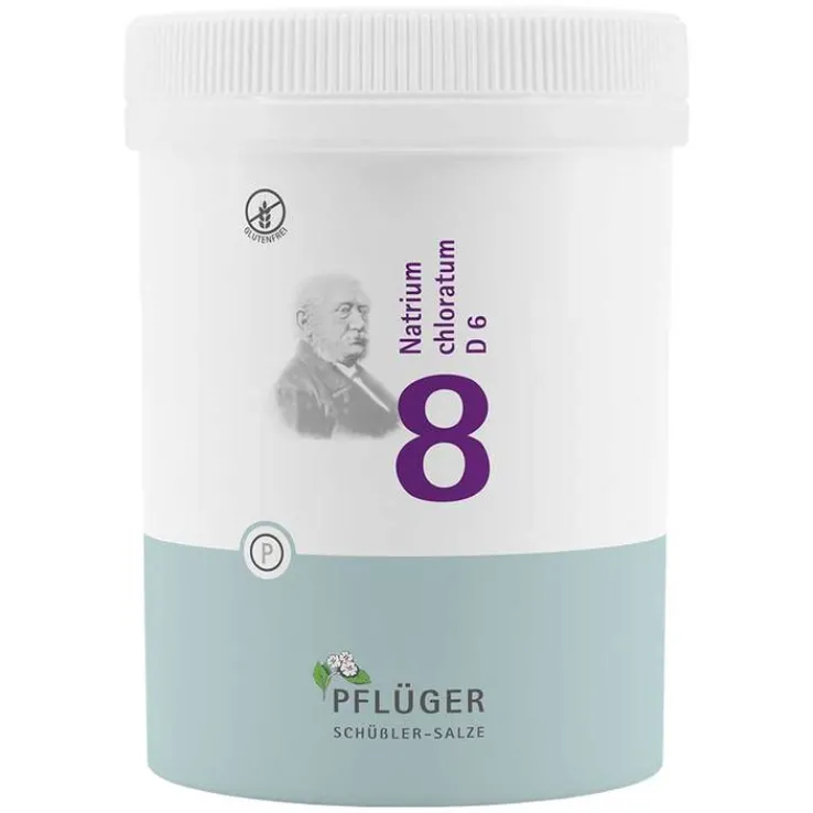 Biochemie Pflüger® Nr. Natrium chloratum D 6 , Zusammensetzung: 1 Tablette enthält: Wirkstoff: Natrium chloratum D 6 Trit. 250 mg. Sonstige Bestandteile: Calciumbehenat (DAB), Kartoffelstärke. Registriertes homöopathisches Arzneimittel, daher ohne Angabe einer therapeutischen Indikation. Gegenanzeigen/Nebenwirkungen: keine bekannt. Enthält Lactose. Packungsbeilage beachten. Zu Risiken und Nebenwirkungen lesen Sie die Packungsbeilage und fragen Sie Ihre Ärztin, Ihren Arzt oder in Ihrer Apotheke. Homöopathisches Laboratorium Alexander Pflüger GmbH & Co. KG, 33378 Rheda-Wiedenbrück | [email protected] | www.pflueger.de