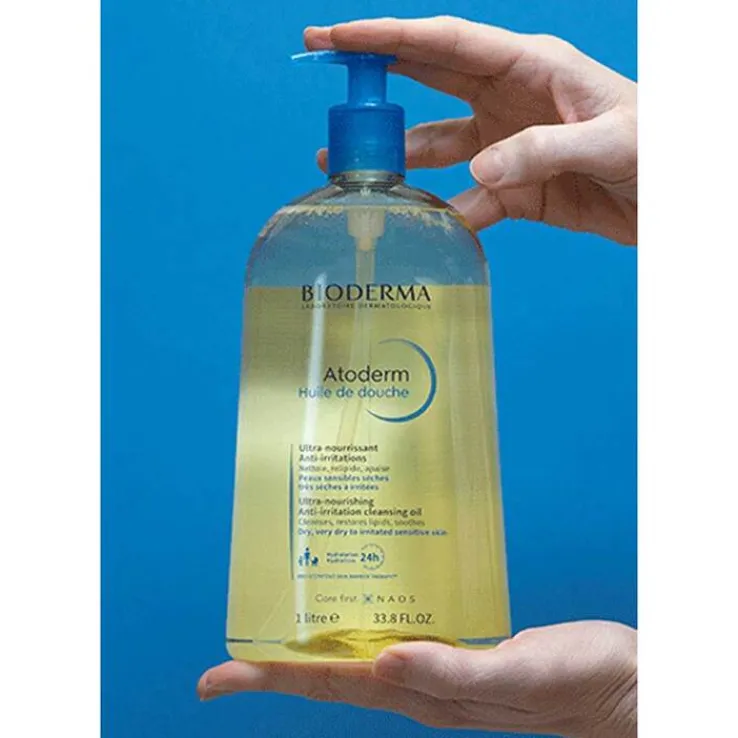 Bioderma Atoderm Huile de Douche für trockene, zu Neurodermitis und Ekzemen neigende Haut, 1 l