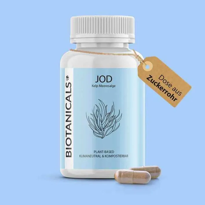 Das Biotanicals Jod bietet Ihnen die exzellenten Algen als nachhaltige und vegane Quelle für Jod in seiner natürlichen Form und in Bio-Qualität. Das enthaltene Jod wird als Qualitätsprodukt in Deutschland hergestellt, sind zu 100% klimaneutral und mit dem Kauf wird die Reinigung von Plastik aus den Weltmeeren unterstützt. Durch die Verwendung von Dosen aus Zuckerrohr wird der Kontakt der Kapsel mit Mikroplastik vermieden. Die Dosen sind kompostierbar und es wird weniger Mikroplastik in Umlauf gebracht.