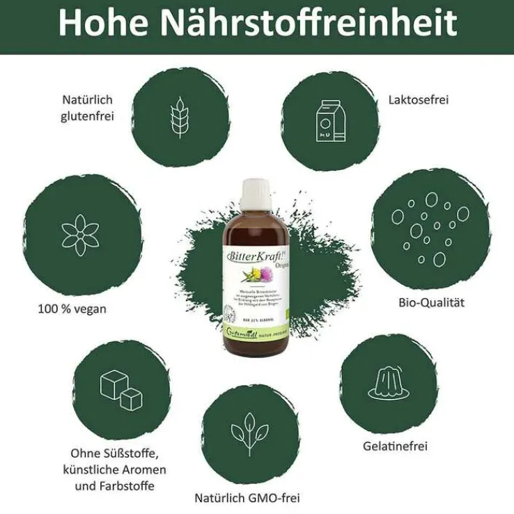 Mit seiner Arbeit sorgt der Hersteller Gutsmiedl Naturprodukte dafür, dass die Notwendigkeit der Bitterstoffe wiedererkannt wird. Er möchte, dass man sich im Alltag über den bitteren Geschmack freut und dass Bitterstoffe in jedem Haushalt bewährte Begleiter sind. Wieso soll man an Perfektion etwas ändern? Bitterstoffe sind vertraute Favoriten für jeden Tag.