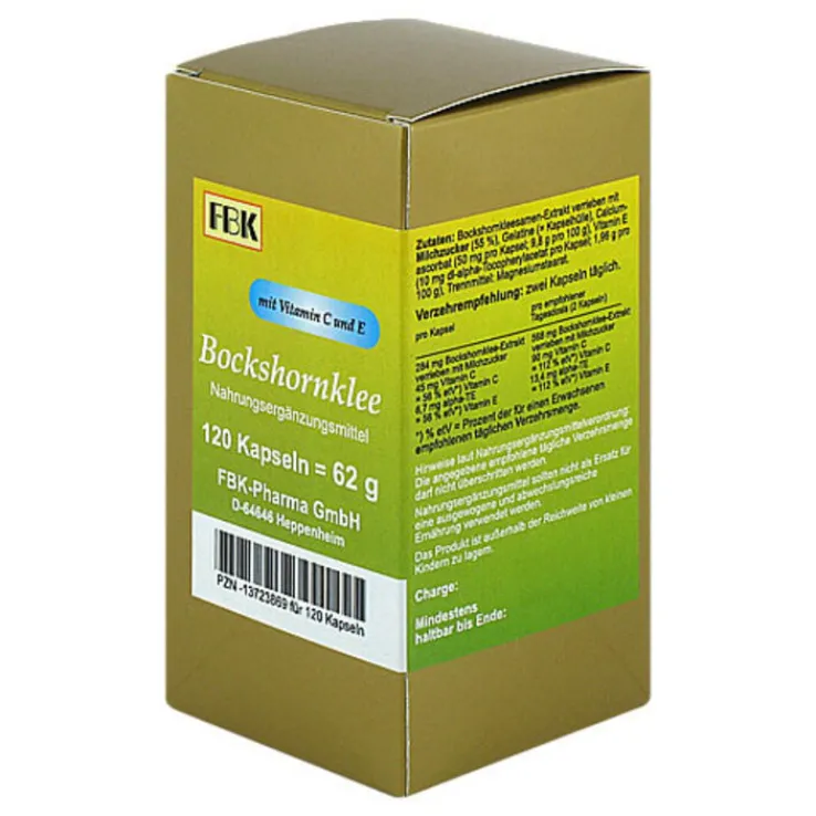 Nahrungsergänzungsmittel mit Bockshornkleesamen-Extrakt, Vitamin C und E