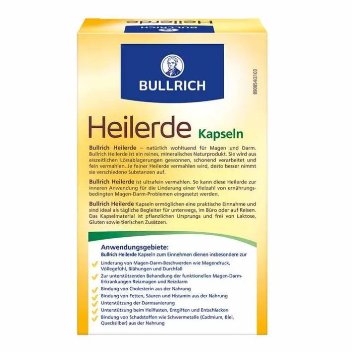 Bullrich Heilerde ist ein reines, mineralisches Naturprodukt. Sie kann zur inneren Anwendung für die Linderung einer Vielzahl von ernährungsbedingten Magen-Darm-Beschwerden eingesetzt werden. Bullrich Heilerde Kapseln ermöglichen eine praktische Einnahme und sind ideal als täglicher Begleiter für unterwegs, im Büro oder auf Reisen. Das Kapselmaterial ist pflanzlichen Ursprungs und frei von Laktose, Gluten sowie tierischen Zusätze.