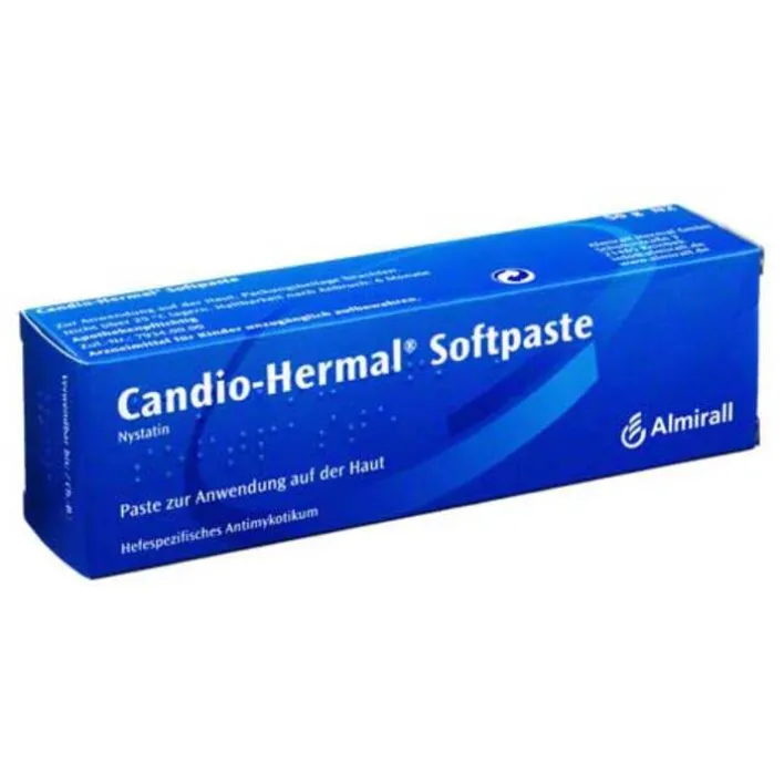 Candio-Hermal® Softpaste. Wirkstoff: Nystatin. Anwendungsgebiete: Nässende Hefepilzinfektionen der Haut bei Windeldermatitis (Windelsoor auf wunder Haut). Zu Risiken und Nebenwirkungen lesen Sie die Packungsbeilage und fragen Sie Ihre Ärztin, Ihren Arzt oder in Ihrer Apotheke. ALMIRALL HERMAL GmbH