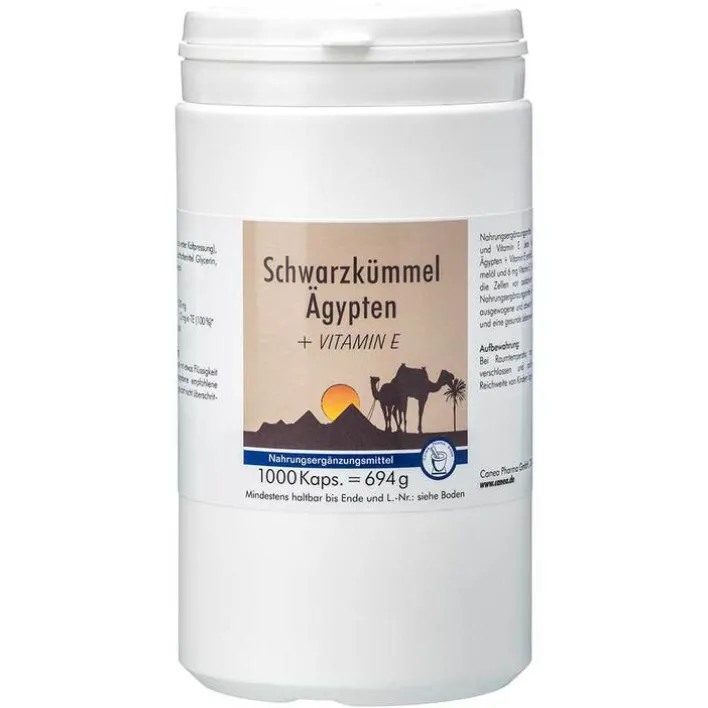 Canea-Pharma Schwarzkümmel Ägypten + E Kapseln, 1000 St> Schwarzkümmelöl|Essentielle Fettsäuren