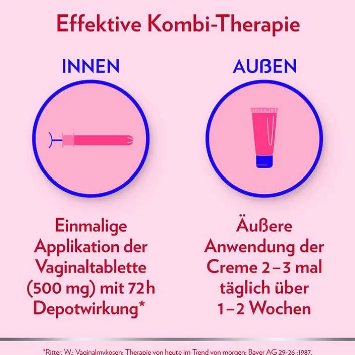- Praktische Kombination aus nur einer Vaginaltablette und Creme
