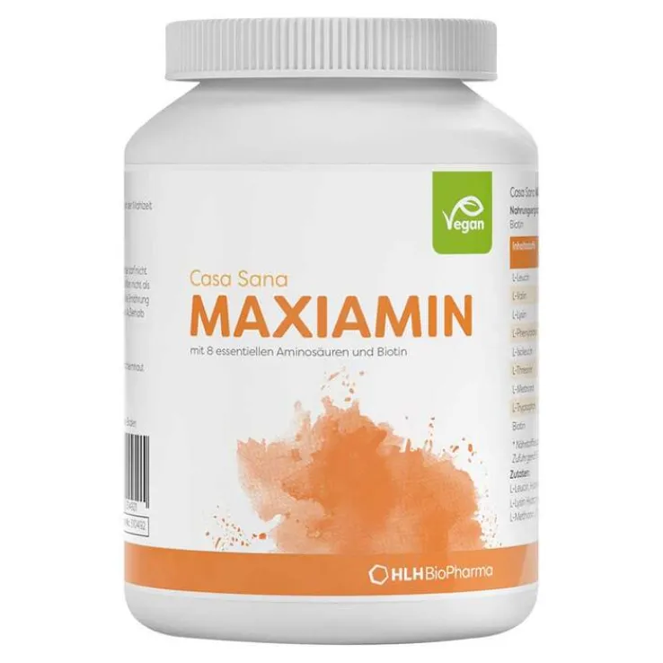 Casa Sana Maxiamin enthält alle 8 lebenswichtigen (essentiellen) Aminosäuren in rein kristalliner Form. Das Verhältnis der einzelnen Aminosäuren ist optimal aufeinander abgestimmt und entspricht dem menschlichen Aminosäure-Grundmuster. Durch die Darreichung in L-Form werden die Aminosäuren schnell und effizient vom Körper aufgenommen. Aminosäuren zählen zu den wichtigsten Bausteinen der Darmschleimhaut.