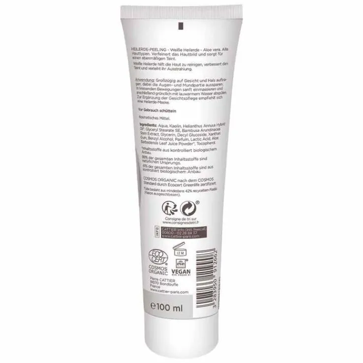 Das Cattier weiße Heilerde Peeling ist ein sanftes und pflegendes Peeling. Es verfeinert die Hautstruktur und sorgt für einen ebenmäßigen Teint. Die Haut wird von Unreinheiten befreit und glatt, zart und klar. Das Peeling ist mit weißer Heilerde und Aloe Vera und eignet sich für alle Hauttypen.