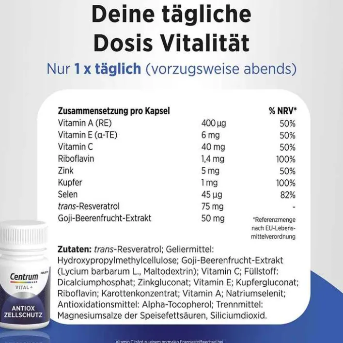 Schreibe die erste Bewertung für „Centrum Vital + Antiox Zellschutz Kapseln, 30 St> Resveratrol“ Antworten abbrechen