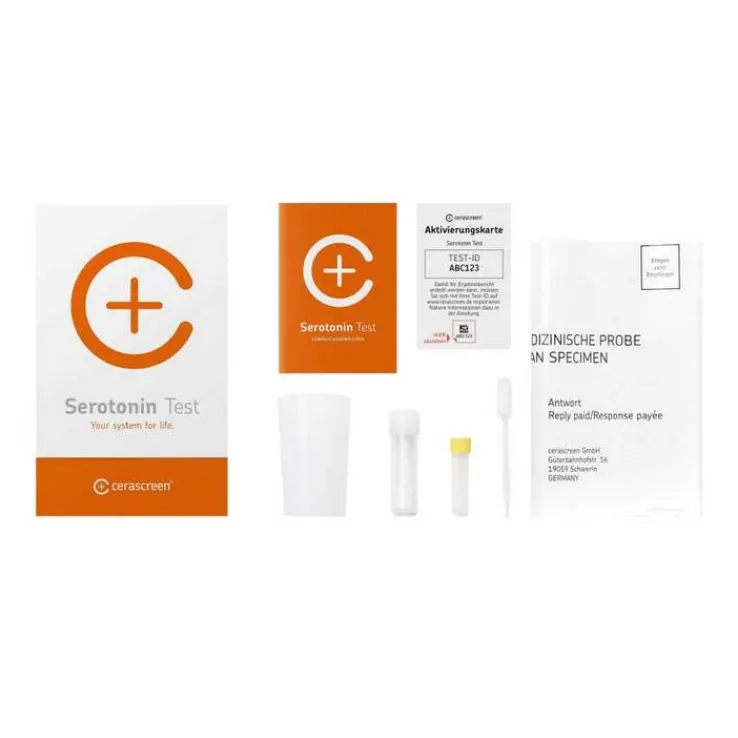 Der cerascreen® Serotonin-Test ist ein Probenahme-Einsendekit für zu Hause und bestimmt die Serotonin-Konzentration in Ihrem Urin. Der Test beinhaltet die kostenlose Auswertung im Diagnostik-Fachlabor und einen ausführlichen Ergebnisbericht.