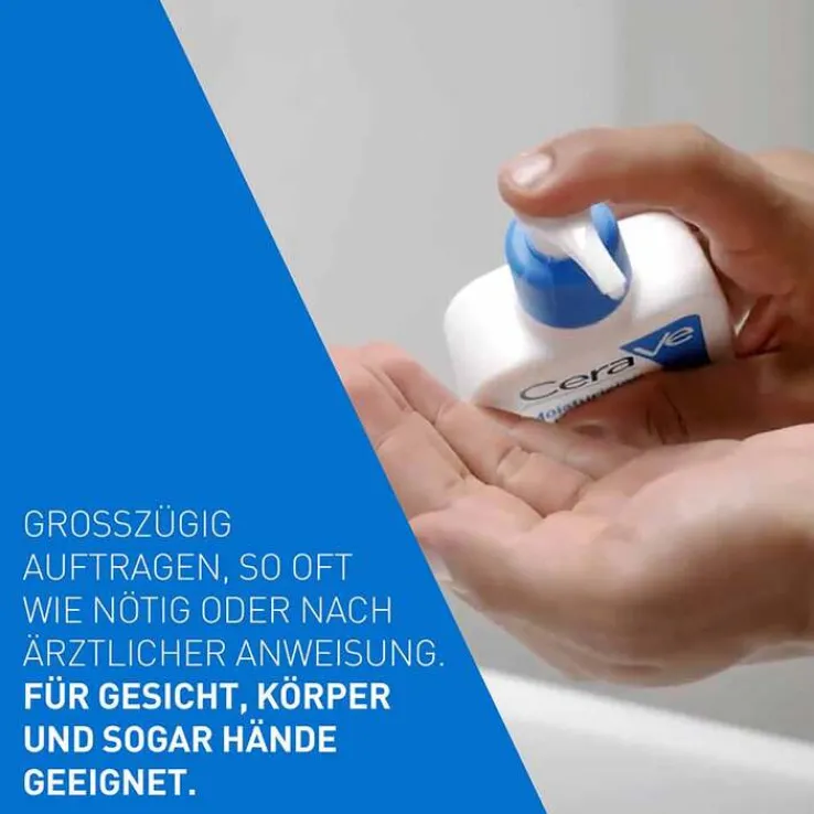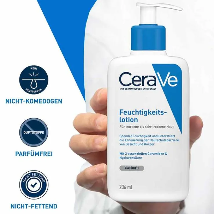Diese dafür regelmäßig insbesondere auf trockene und sehr trockene Hautstellen geben und sanft in kreisenden Bewegungen einmassieren. Die Augenkonturen aussparen. Dank ihrer nicht-komedogenen und parfumfreien Formel kann die feuchtigkeitsspendende Pflegelotion für alle Hauttypen, einschließlich für zu Neurodermitis und Allergien neigende Haut verwendet werden. Um die Pflegeroutine zu intensivieren eignet sich darüber hinaus ein CeraVe Reinigungsprodukt für trockene Haut.