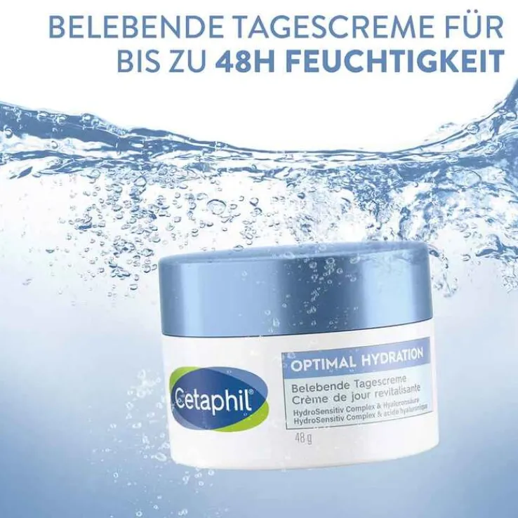 Das Cetaphil Optimal Hydration belebende Feuchtigkeitscreme ist Teil der Cetaphil Optimal Hydration Serie für feuchtigkeitsarme, müde wirkende Haut. Diese bietet ein ganzheitliches und aufeinander abgestimmtes Pflegekonzept für klinisch erprobte 48h-Hydratisierung.