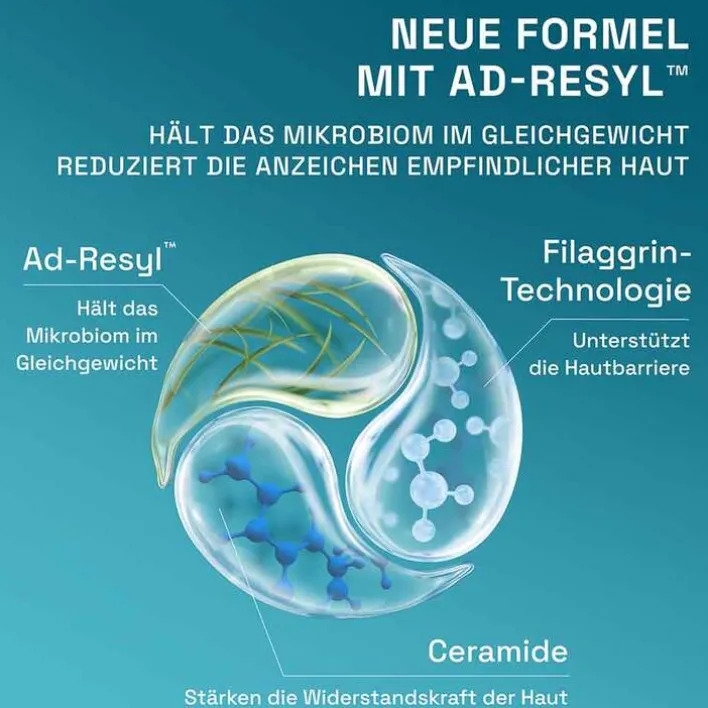 - Mikrobiom-freundliche Formel mit Ad-Resyl, Filaggrin-Bausteinen & Ceramiden
