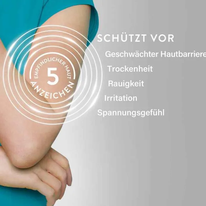Die Hautcreme gegen Juckreiz schützt vor den 5 Anzeichen empfindlicher Haut, wie Trockenheit, Rauigkeit, Spannungsgefühl, Irritationen und einer geschwächten Hautbarriere.