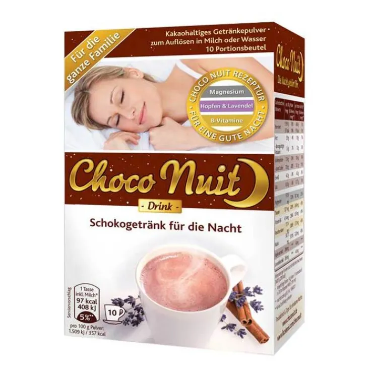 Choco Nuit Drink ist das leckere Schokogetränk für eine gute Nacht. Seine besondere Nachtrezeptur verbessert das Wohlbefinden, stimmt auf die Nacht ein und enthält wertvolle Nährstoffe* für gesunde Nerven und Psyche. Choco Nuit Drink ist kein Arzneimittel, sondern ein Lebensmittel mit natürlichen Zutaten und bewirkt keine Gewöhnungseffekte.