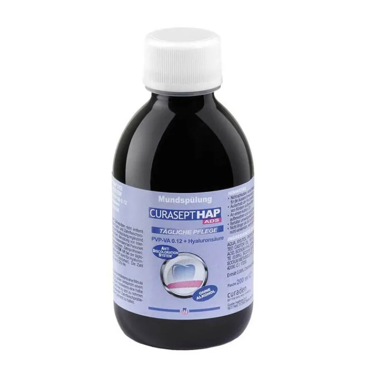 Curasept HAP 012 mit dem ADS System hilft bei der täglichen Vorbeugung von Zahnfleischproblemen. HAP steht für Hyaluronsäure-Polymer (Hyaluronic Acid PVP-VA-Copolymer). Die Zahl 012 weist auf die PVP-VA-Konzentration von 0,12 % hin. Die Verwendung der Curasept HAP 012-VA 0,12 + Hyaluron Mundspülung ist ideal in Verbindung mit Curasept Zahnpasta.