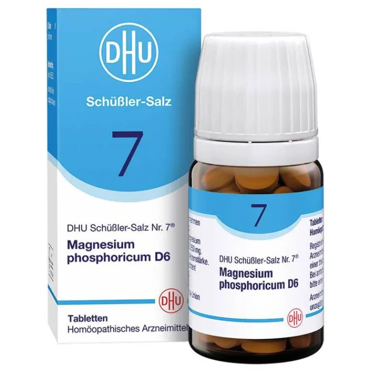 DHU Schüßler-Salz Nr. 7® Magnesium phosphoricum D6 Anwendungsgebiete: Registriertes homöopathisches Arzneimittel, daher ohne Angabe einer therapeutischen Indikation. Zu Risiken und Nebenwirkungen lesen Sie die Packungsbeilage und fragen Sie Ihre Ärztin, Ihren Arzt oder in Ihrer Apotheke. Enthält Lactose und Weizenstärke. Packungsbeilage beachten! Deutsche Homöopathie-Union DHU-Arzneimittel GmbH & Co. KG, Karlsruhe