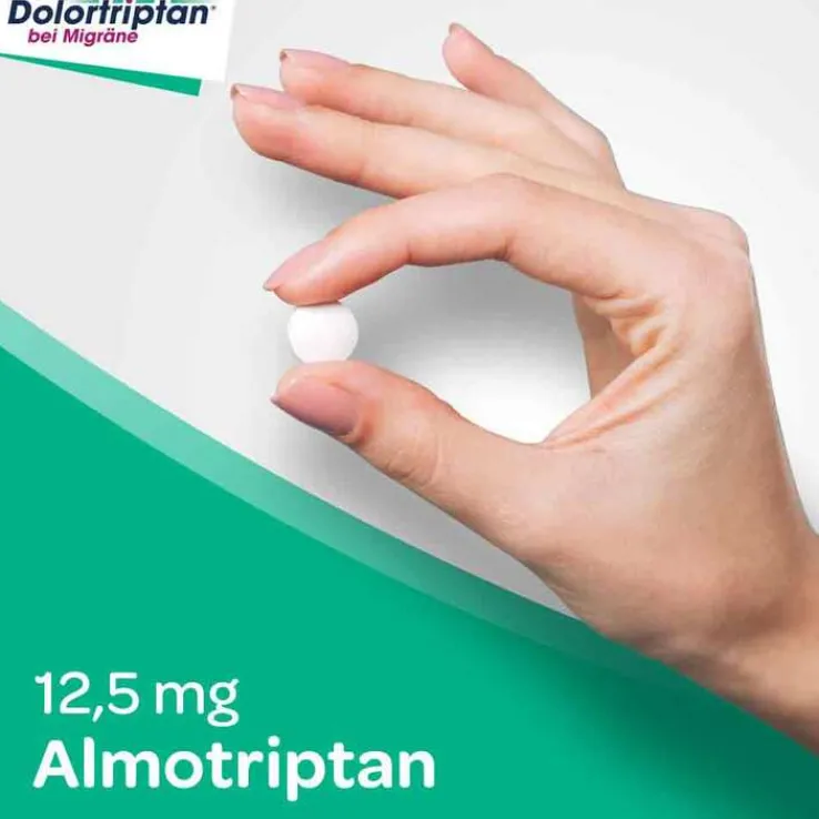 Dolortriptan® bei Migräne. Wirkstoff: Almotriptan (in Form von Almotriptan[(RS)-hydroxysuccinat]). Anwendungsgebiete: Zur akuten Behandlung von Kopfschmerzen bei Migräneanfällen mit oder ohne Aura. Zur Anwendung bei Erwachsenen von 18 bis 65 Jahren. Zu Risiken und Nebenwirkungen lesen Sie die Packungsbeilage und fragen Sie Ihre Ärztin, Ihren Arzt oder in Ihrer Apotheke. Pharmazeutischer Unternehmer: Almirall, S.A., General Mitre, 151, 08022 Barcelona, Spanien. Mitvertrieb: Kenvue Germany GmbH, 41470 Neuss. Stand: 05/2025