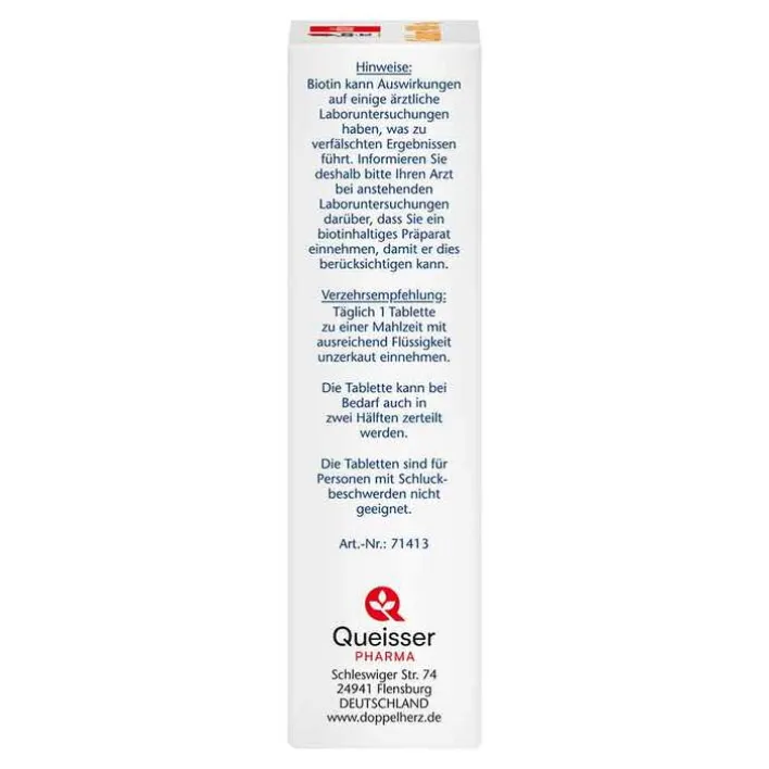 Biotin kann Auswirkungen auf einige ärztliche Laboruntersuchungen haben, was zu verfälschten Ergebnissen führt. Informieren Sie deshalb Ihren Arzt bei anstehenden Laboruntersuchungen darüber, dass Sie ein biotinhaltiges Präparat einnehmen, damit er dies berücksichtigen kann.