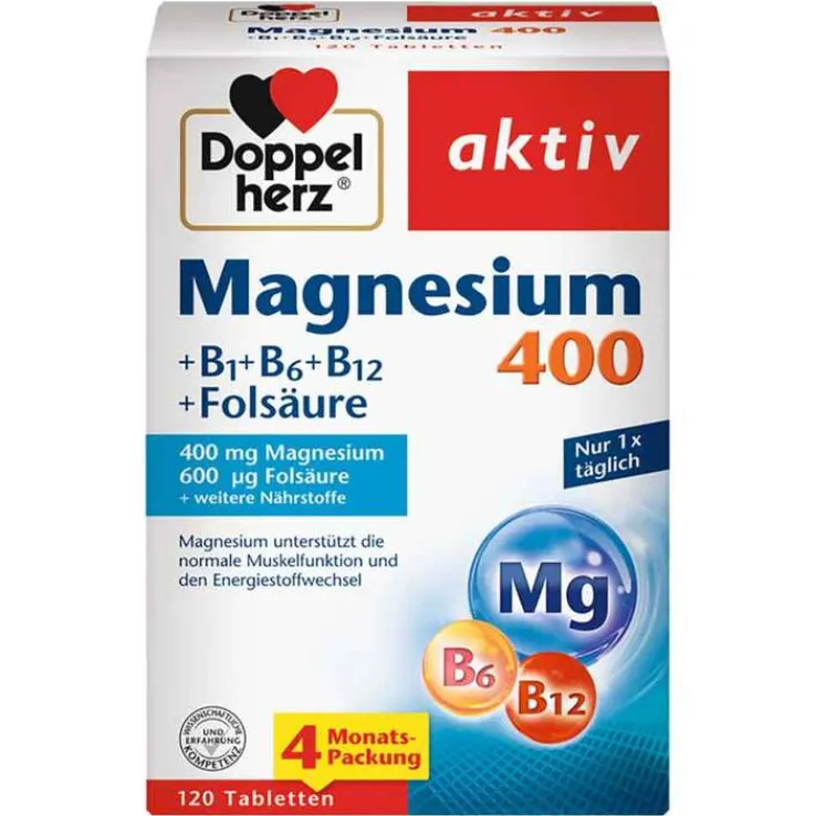 Doppelherz Magnesium 400 + B1 + B6 + B12 + Folsäure Tabletten , 120 St
