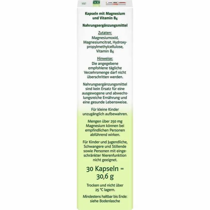 Magnesiumoxid, Magnesiumcitrat, Hydroxypropylmethylcellulose, Vitamin B6