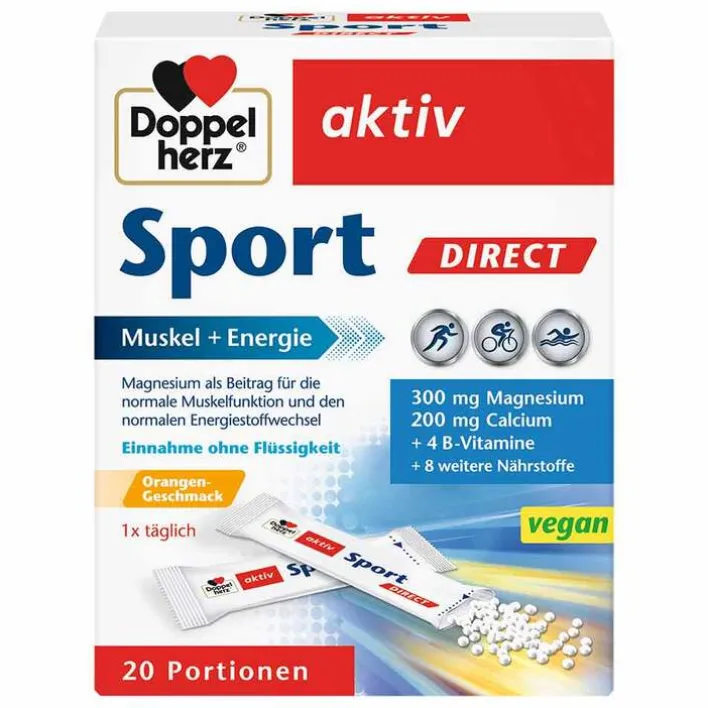 Schon ein Portionsbeutel täglich leistet einen wichtigen Beitrag zur Nährstoffversorgung und kann körperlich Aktiven helfen, leistungsfähig zu bleiben. Doppelherz Sport Direct gibt dem Körper zurück, was er durch körperliche Anstrengung verlieren könnte.