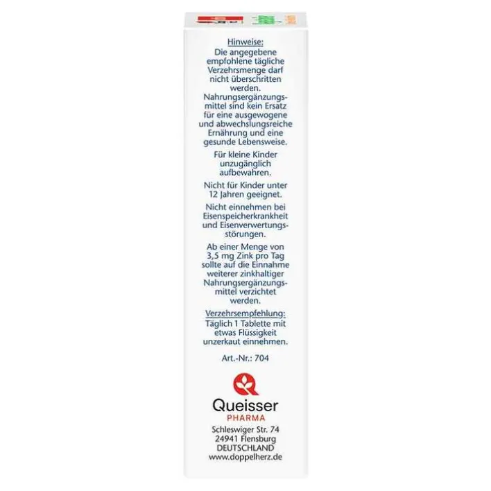 Ab einer Menge von 3,5 mg/Tag sollte auf weitere zinkhaltige Nahrungsergänzungsmittel verzichtet werden.