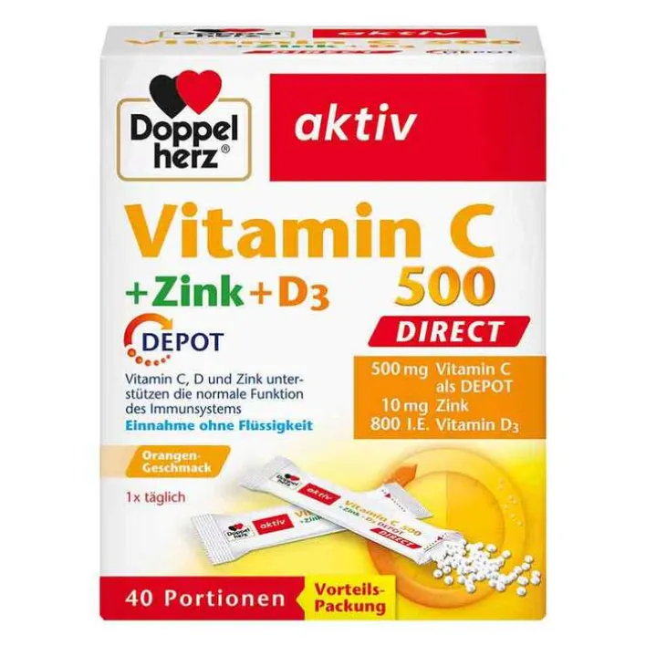 Doppelherz Vitamin C 500 + Zink + D3 Depot Direct Pel., 40 St> Zink|Vitamin D (Colecalciferol)