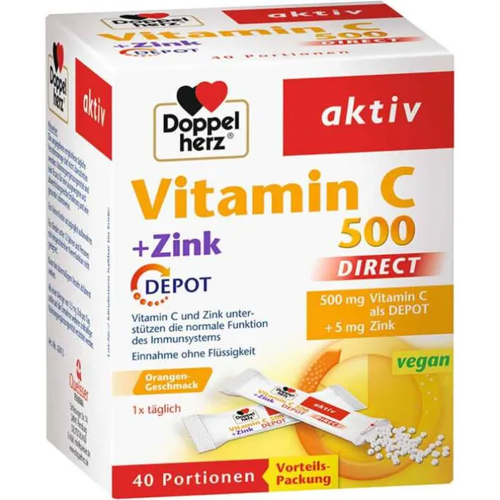 Doppelherz Vitamin C 500 + Zink Depot Direct Pellets, 40 St> Immunsystem