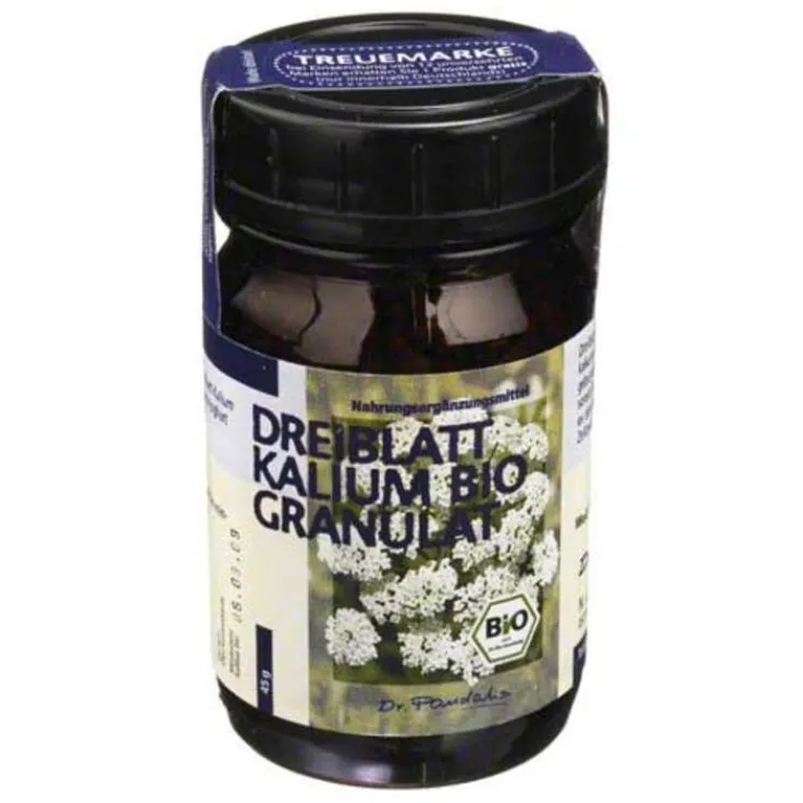 Kalium unterstützt die normale Nerven- und Muskelfunktion und einen normalen Blutdruck. Die wild wachsenden Dreiblatt-Pflanzen, Grundlage des Dreiblatt Kalium Granulats, zeichnen sich durch ihren Kalium-Gehalt aus.