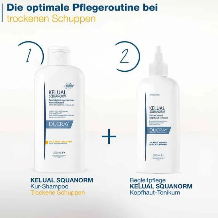 Die feuchtigkeitsspendende Formulierung von Kelual Squanorm Kur-Shampoo trockene Schuppen setzt auf wirksame Aktivstoffe. Die Probiotic Science Technology ahmt die langanhaltende Wirkung von Probiotika effektiv nach und wirkt sofort gegen Schuppen.