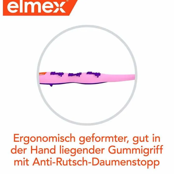Die Elmex Lern-Zahnbürste 0-2 Jahre weich Kinder-Zahnbürste wurde speziell für die schonende Reinigung und Pflege der ersten Zähne entwickelt.