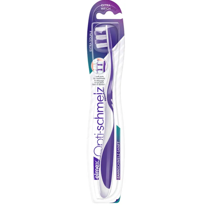 Pflegen Sie Ihren Zahnschmelz beim Zähneputzen mit der Elmex Opti-schmelz Extra weich Zahnbürste.
