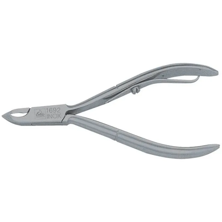 Die Zange ist aus rostfreiem, geschmiedetem Edelstahl gefertigt, was nicht nur für ihre Langlebigkeit sorgt, sondern auch hygienische Anwendungen ermöglicht, da sie sterilisierbar ist. Ein besonderes Merkmal ist die integrierte Drehfeder, die eine mühelose Handhabung gewährleistet und die Zange nach jedem Schnitt sanft wieder öffnet. Mit einer Schneiden Länge von 4 mm ist sie perfekt geeignet, um auch feine und schwierige Bereiche der Nagelhaut präzise zu bearbeiten. Ideal für alle, die Wert auf professionelle und gepflegte Nägel legen. – Made in Solingen / Germany