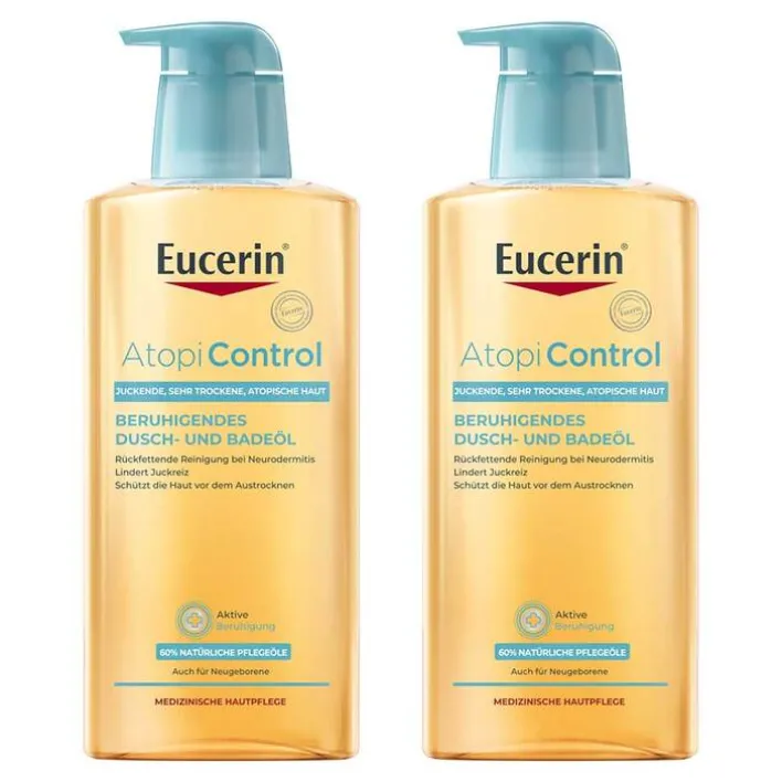Eucerin AtopiControl Dusch- und Badeöl (2x 400 ml) – reinigt und beruhigt atopische Haut, lindert Juckreiz bei Neurodermitis