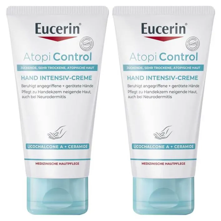 Eucerin Atopicontrol Hand Intensiv-Creme, 2×75 ml> Trockene & Sensible Haut|Neurodermitis Basispflege