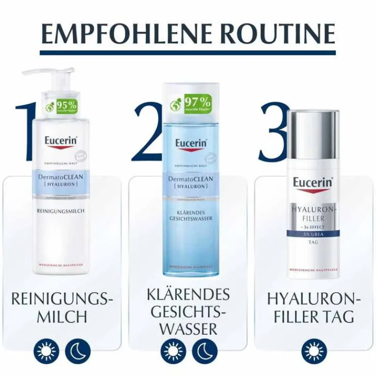 Die Produktion der hauteigenen Hyaluronsäure lässt mit der Zeit nach, wodurch sich Falten bilden und das Hautbild älter aussieht. Ist die Haut zusätzlich trocken, können schnell Juckreiz und Spannungsgefühle aufkommen. Mit ihrer innovativen Formel spendet die Eucerin HYALURON-FILLER 5 % Urea Tagespflege intensive Feuchtigkeit und es werden selbst tiefe Falten sichtbar gemildert.
