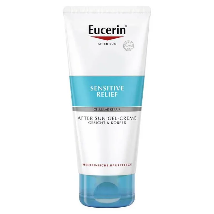 Die Eucerin After Sun Sensitive Relief Gel-Creme ist eine ultraleichte Hautpflege nach dem Sonnenbad für den ganzen Körper und das Gesicht. Die Apres Sun Lotion mit CELLULAR REPAIR TECHNOLOGY kühlt die Haut sofort und beruhigt langanhaltend. Mit der kühlenden Bodylotion wird die Haut dabei mit Feuchtigkeit versorgt und Spannungsgefühle werden gemildert.