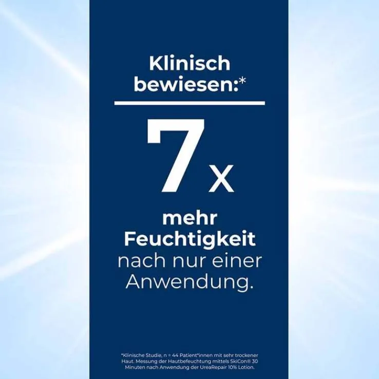 Die Eucerin UreaRepair Lotion 10% pflegt hochwirksam bei sehr trockener bis extrem trockener Haut. In ihrem Repair-PLUS-Komplex kombiniert die Bodylotion die Wirkstoffe Urea, Ceramide sowie die natürlichen Feuchthaltefaktoren. So wird die Feuchtigkeitsbindung der Haut verbessert und der Lipid-(Fett-) und Feuchtigkeitshaushalt wieder in ein natürliches Gleichgewicht gebracht.