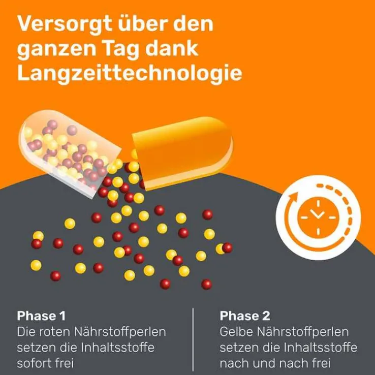 Die zeitverzögerte Freisetzung der Vitalstoffe ermöglicht eine umfassende Versorgung mit allen Nährstoffen über den ganzen Tag.